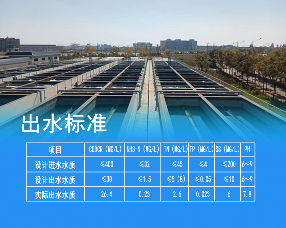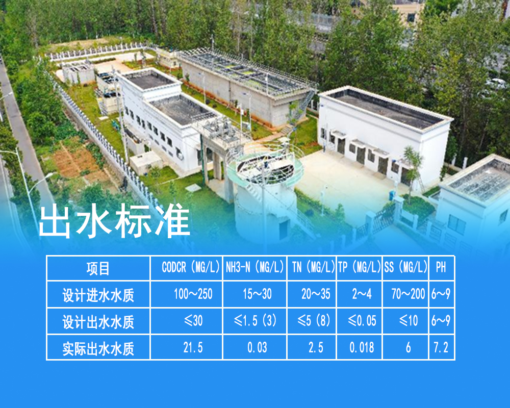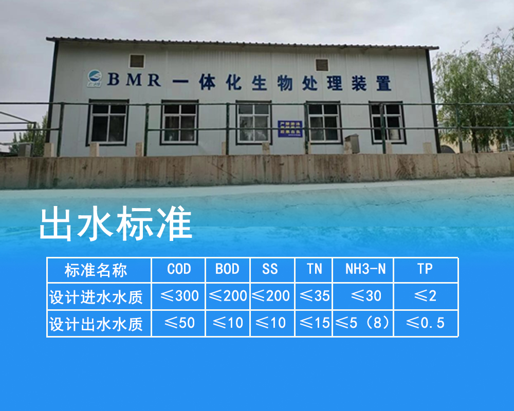 處理規模:100t/d,采用工藝:BMR,進水水質:生活污水,出水水質:國家一級A標準